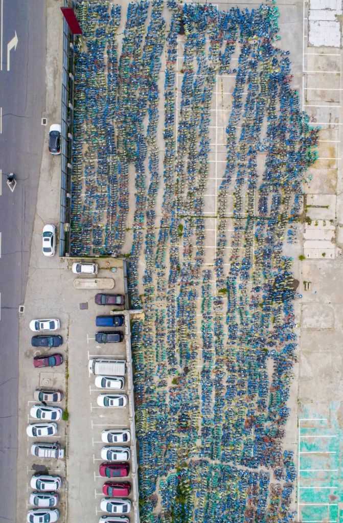 Temporary dock for shared-use bicycles in Xiangyang, Hubei