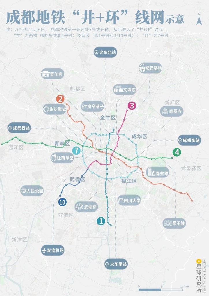 And just one year later, Line 10, the first route allowing direct transfer at the airport, and Line 7, the first ring metro line, were launched back to back. Chengdu’s metro system wasted no time in building thee “# and O network” era.