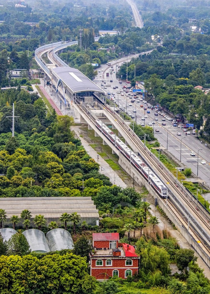 On this day, the Chengdu East New Area project officially commenced, and the “two-winged city across a mountain” initiative transitioned from planning phase to implementation phase. Four months later, Line 18 of the regional express railway came into service. As the first regional express railway in the whole country to extend into city centre area, it traverses the Longquan Mountain and connects the new airport to further accelerate the ‘eastward march’ of Chengdu’s development.