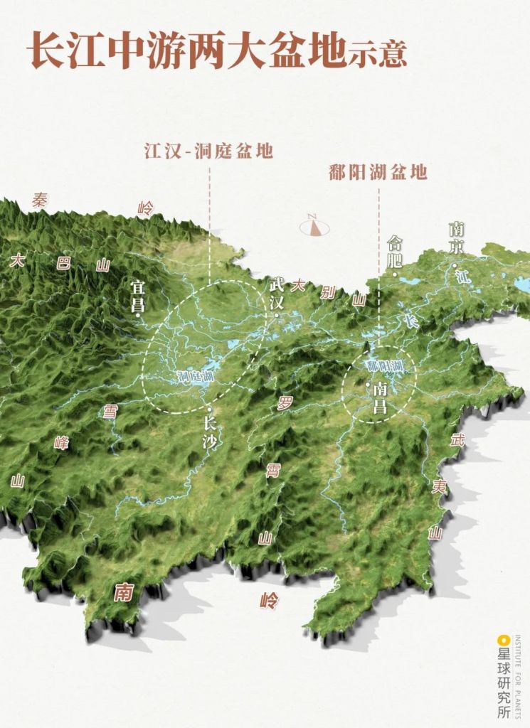 These basins scatter along the banks of the Yangtze River and around Poyang and Dongting Lakes.