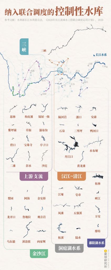 Among them, the 41 controlled reservoirs are able to store up to 59.8 billion cubic metres of water in total, which is twice the volume of the Poyang Lake.