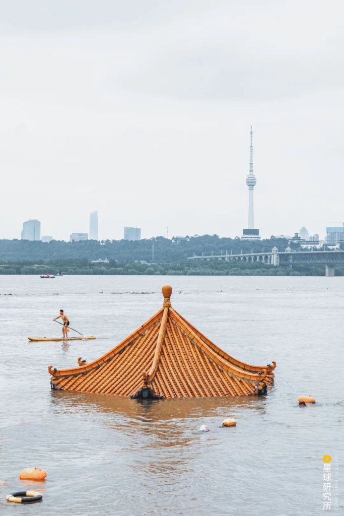 The pavilion on the Huanghuaji in Wuhan was almost completely submerged on 13 July 2020